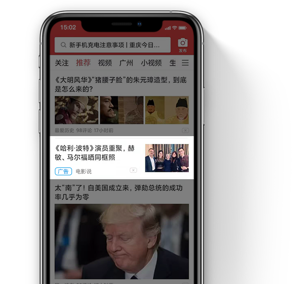 今日头条APP广告,为广告主提供优质的广告推广平台。 主要有开屏广告、信息流广告、详情页广告三种形式,今日头条目前月活跃 人数超1.25亿,广告投放精准定位,广告后台操作更方便,数据显示更清晰。